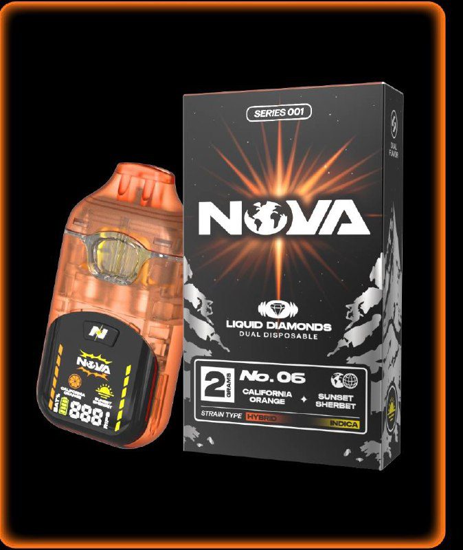 The Nova 2G Liquid Diamond Dual Disposable – California Orange + Sunset Sherbet combines bright citrus energy with creamy dessert relaxation in one premium vape. For cannabis and vape lovers seeking high-quality flavor, smooth potency, and convenient dual-strain versatility, this Nova disposable is a top choice. Experience the next level of liquid diamond vaping with Nova’s innovative dual disposable design.
